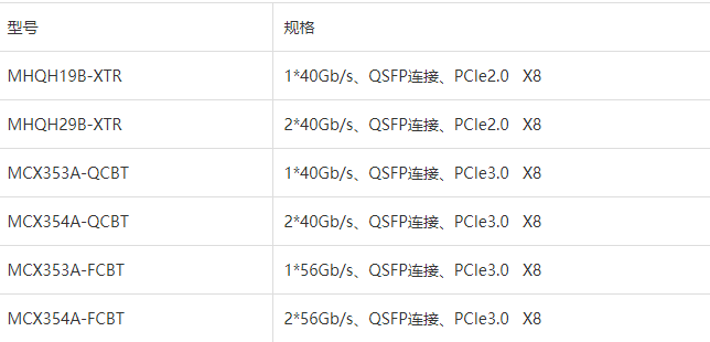 NVIDIA MCX354A-FCCT ConnectX-3 InfiniBand网卡 (MCX354A-FCCT) 技术参数